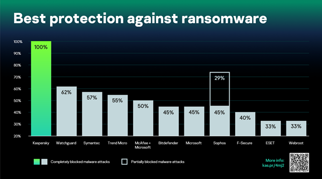 ¿Solo el 50 %? Pero, eso es como si en lugar de la seguridad adecuada para un edificio (cámaras, guardias de seguridad, etc.), simplemente pones en la puerta de la entrada un cartel con el mensaje: “¡No se permite la entrada de enemigos!”. Necesitas una protección del 100 % o nada. Bueno, y contra el ransomware, solo una empresa ofrece una protección del 100 %. ¡Adivina cuál!