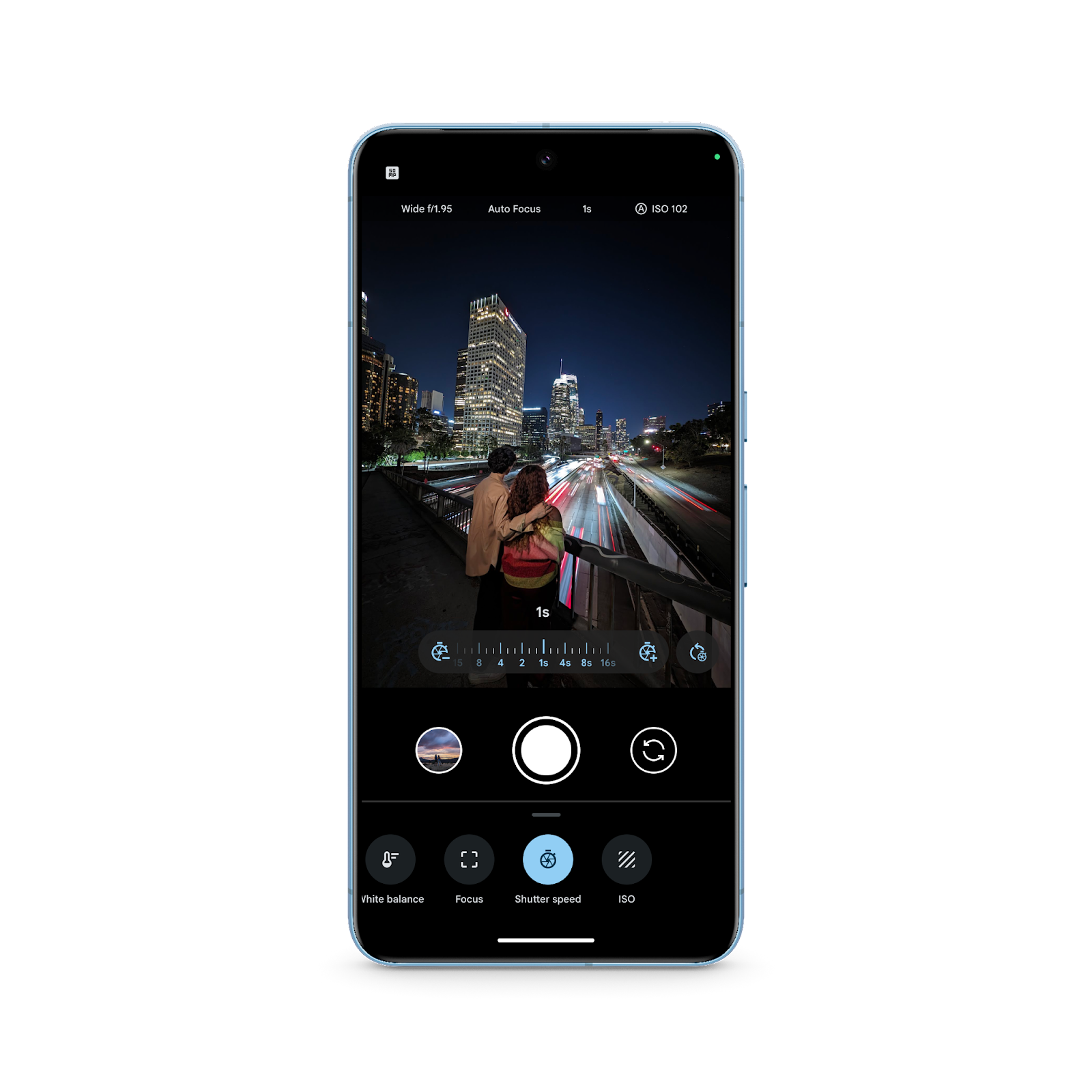 Hemos rediseñado la aplicación de la cámara para que la interfaz resulte más intuitiva. Ahora, podrás encontrar y capturar contenidos con mayor rapidez en los modos de foto y vídeo que más te gusten. En el caso de Pixel 8 Pro, tienes acceso a los Controles Pro, que te ofrecen opciones de control más profesionales para la cámara de tu Pixel; por ejemplo, puedes ajustar la velocidad de obturación o la sensibilidad ISO, hacer fotos de 50 MP en todo el intervalo de zoom, y muchas más cosas.