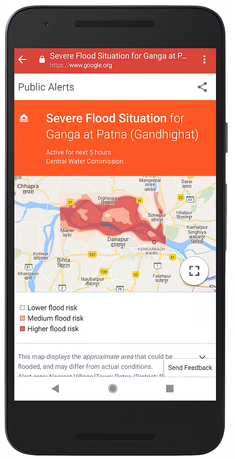 Se nos ocurrió crear modelos predictivos asistidos por IA que hacen proyecciones de los momentos y lugares que pueden verse afectados por inundaciones inminentes, con el fin de ayudar a la población a prepararse. Esta iniciativa tuvo su origen en la India. Recientemente, hemos ampliado las alertas de inundaciones a 80 países.
