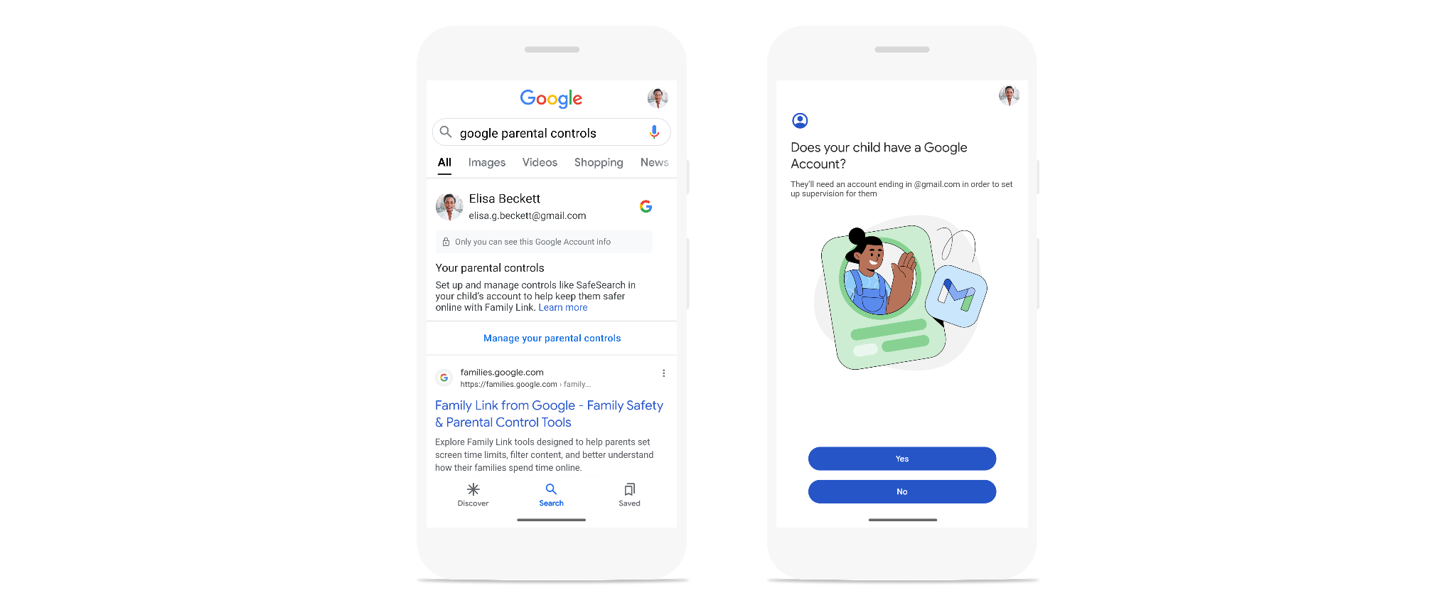 Desde ahora, también será más fácil encontrar controles parentales directamente en la Búsqueda. Solo tienes que escribir una consulta relacionada, como «control parental en google» o «family link de google» y verás un cuadro con información sobre cómo administrar los controles parentales.