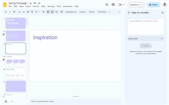 Sí, una imagen vale más que mil palabras. Pero, hasta ahora, crear imágenes únicas y relevantes para una presentación era un proceso manual y laborioso. Hoy, estamos incorporando la tecnología Duet AI a Slides para generar imágenes, de manera fácil, con unas pocas palabras. Esto es posible ya que el verdadero poder de estos modelos de imágenes permiten visualizar algo que nunca ha existido. Tal vez eres un especialista en marketing que realiza una lluvia de ideas sobre conceptos iniciales para una campaña con tu agencia creativa, con el objetivo de que los parisinos se vayan de safari, y deseas acercar información visual clara, desde el principio, para evitar perder tiempo. Ahora, tendrás la posibilidad de generar una imagen original, que transmita tu impronta artística única, con tan solo una simple indicación.